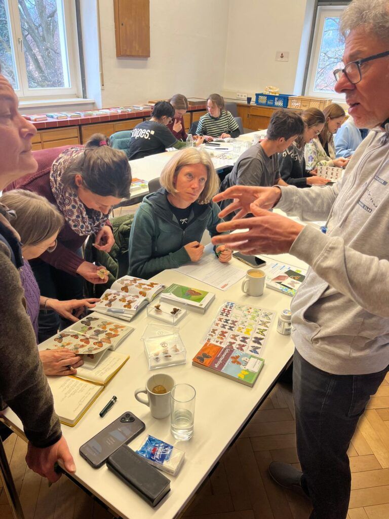 30.03.2026 – In Österreich gibt es über 200 Tagfalterarten – doch wie kann man sie bestimmen? Genau dieser Frage widmeten sich auch heuer wieder unsere Bestimmungskurse in Innsbruck und im Botanischen Garten Linz. Mittlerweile sind sie schon Tradition, und auch 2026 war das Interesse wieder groß. 40 neugierige Teilnehmende waren dabei. Unter ihnen waren viele bekannte Gesichter, darunter langjährige Viel-Falter Erheber:innen, aber auch neue Freiwillige, Studierende und andere an Schmetterlingen interessierte Personen. Die Vorkenntnisse waren ganz unterschiedlich – und genau das machte den Austausch besonders spannend.